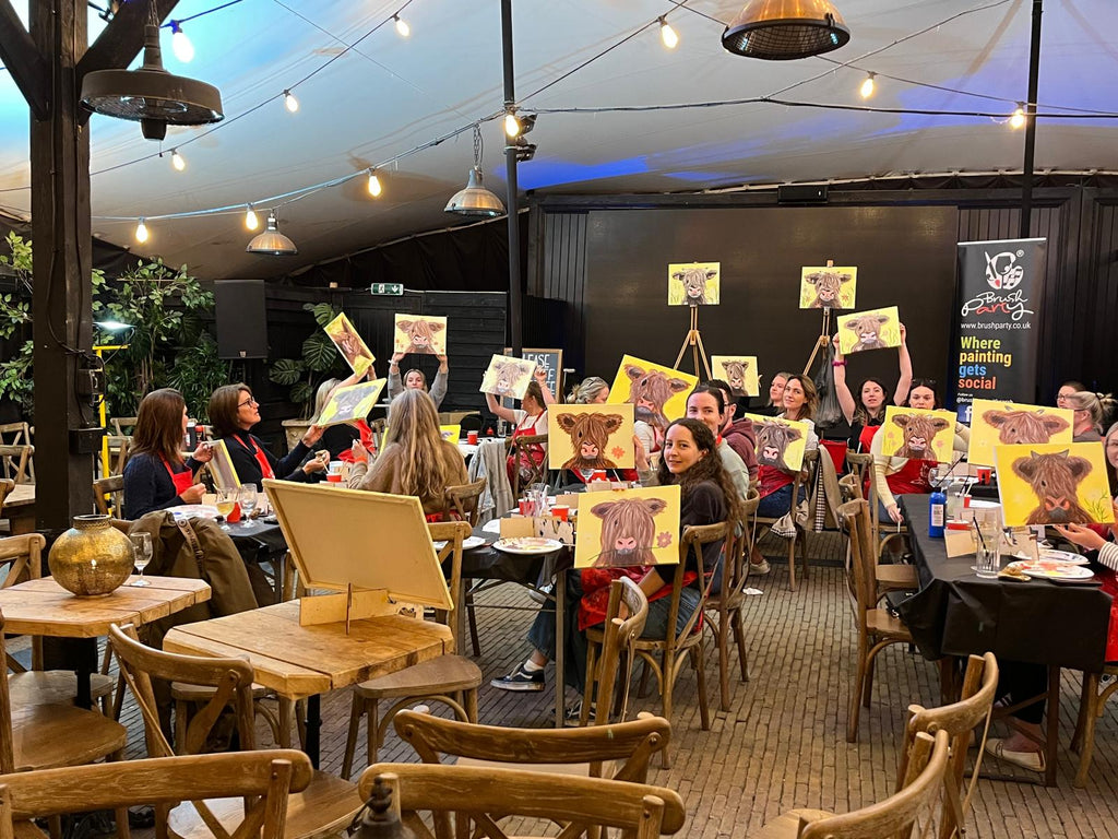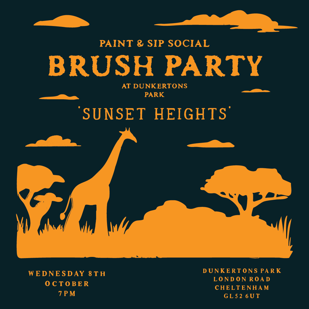 Join Brush Party, the UK’s ‘Paint and Sip’ experts on Wednesday 8th October at 7 pm to create their fabulous theme ‘Sunset Heights.'